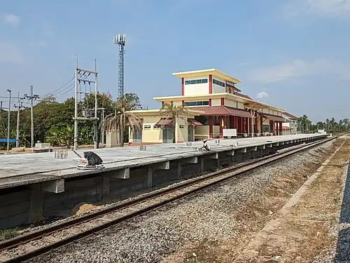 Khlong Ta Khot railway station is a railway station located in Khlong Ta Khot Subdistrict, Photharam District, Ratchaburi. It is a class 3 railway station located 77.290 km (48.0 mi) from Thon Buri railway station.[1][2]
