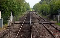 Towards the end of the 19th century, the goods yard siding was extended across the station approach to serve a timber yard which had opened to the west of the station. This arrangement not only blocked passengers' access to the ticket office when wagons were being shunted, but also blocked all means of entry to the timber yard. An additional siding was therefore laid to provide a bypass for the shed which effectively put it on a short loop. Another siding was laid across the road in 1923 when Oxford Farmers Ltd opened a bacon factory.[6]