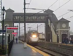 An Acela Express train passing through Kingston at 150 miles per hour (240 km/h)