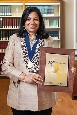 Mazumdar-Shaw with the Othmer Gold Medal, 2014
