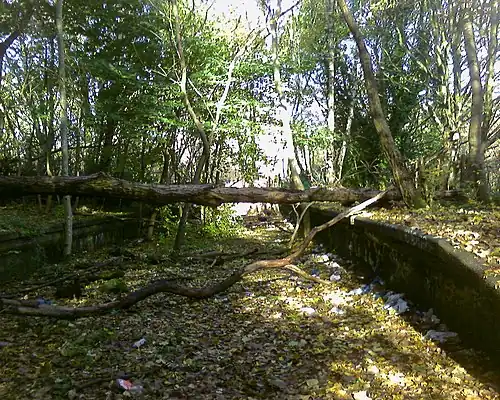 The station building was designed by famous architect Sir J.J. Burnet who earned his knighthood on the basis of his design for the extension of the British Museum.[3] The construction of the station was controversial in the 1890s as it destroyed a local beauty spot known as the Peartree Well.[4] Little is known of the station's use after closure but a photo taken in 1959 appears to show it in use a private house.[5] The station buildings were demolished in 1971 having fallen into disrepair.