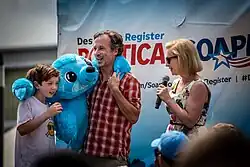 A member of the Democratic Party's relatively conservative Blue Dog faction while in the House, Gillibrand has moved her political positions and ideology toward a liberal, progressive position since her appointment to the Senate.[79][80] In both cases, her views were significantly defined by the respective constituencies she served[81]—a conservative congressional district versus the generally liberal state of New York, especially as defined by New York City. For example, although she had been quiet on the U.S. military's "Don't Ask, Don't Tell" policy when she was in the House, during her first 18 months in the Senate, Gillibrand was an important part of the successful campaign to repeal it.[82]