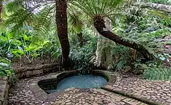 In 1660, by order of Jan van Riebeeck, a hedge of wild almond and brambles was planted to afford some protection to the perimeter of the Dutch colony.[3] Sections of this hedge, named Van Riebeeck's Hedge, still exist in Kirstenbosch. The hedge is a Provincial Heritage Site.[4] The area of the botanical garden was used for the harvesting of timber during this period.