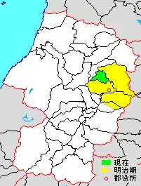 Map showing original extent of Kitamurayama District in Yamagata Prefecture