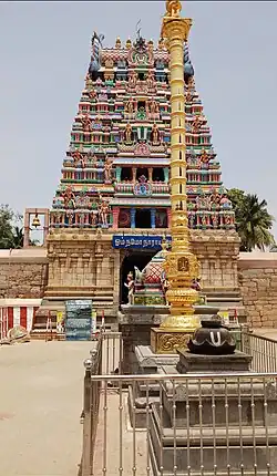 Kodandaramaswamy Temple is a Hindu temple in the town of Ariyalur in Tamil Nadu, India. The presiding deity is Vishnu. However, there is a shrine with the idols of Rama, Sita and Lakshmana. The temple was constructed by a Palubettaraiyar chieftain of Ariyalur. Its oldest records date to the 17th century CE.