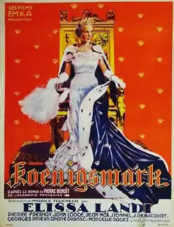 Koenigsmark is a 1935 British-French drama film directed by Maurice Tourneur and starring Elissa Landi, John Lodge and Pierre Fresnay.
