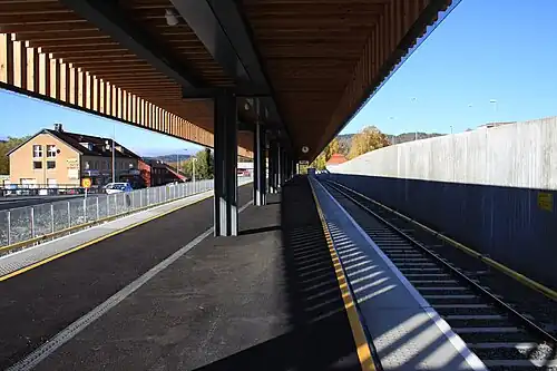 Kolsås is the end station of the Kolsås Line on the Oslo Metro. The station, located in Bærum municipality, comes after Hauger, and is located 17.3 kilometers (10.7 mi) from Stortinget.