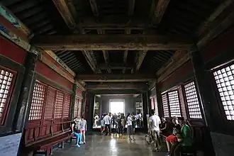 The Second Hall (Chinese: 二堂; pinyin: Èr Táng) was used for receiving high-ranking officials as well as for examinations in music and rites by the duke. It contains seven tablets inscribed by emperors, including one with the character "shou" (longevity) written by the Empress Dowager Cixi.[12]