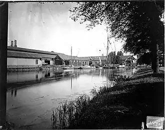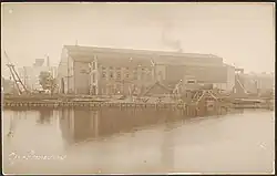 The Koninklijke Nederlandse Grofsmederij, seen to the north. Picture by Jan Goedeljee, about 1900.