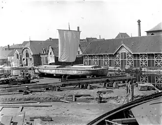 Shipyard at the Koninklijke Nederlandse Grofsmederij. Picture by Jan Goedeljee, about 1900.