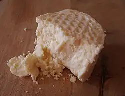 "Kopanisti" in the Greek language is used to describe something that has been beaten.[1] In Kopanisti cheese this refers to its technique of preparation: the cheese is left to age in wide-necked containers until it develops abundant microbial flora, which is then mixed throughout the cheese mass by kneading. This is repeated three or four times until the ripening of the cheese is complete, after 30 to 40 days.[13] It is made from cow, sheep or goat's milk or a mixture thereof.[14]
