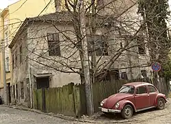 First phase, which included streets and façades, began on 7 September 2016. The works were styled "historical" by the city authorities, though they indeed were overdue.[60] The phase was to be finished in February 2017, but as of May works were not even close to ending, with the streets being dug out, the buildings being covered in nylons and scaffolds and the entire neighborhood being noisy and covered in dust for months. Newspapers described Kosančićev venac as the "horror movie scenery", "ghostly" or looking like "during the World War II".[14][61] In June 2017, city urbanist Milutin Folić, announced that the façades will be finished in July, kaldrma only by the end of the year, the library will be revitalized in 2018 and when that is finished, the gallery will be built.[41] In August 2017 the deadline for façades was moved to November, to be finished concurrently with kaldrma, which is being arranged according to the plans from 1903.[62] However, as of February 2018, the troubled project is not yet finished, while architects denounced the quality of the works. The criticism include: frequent pauses and overall length of the works, disappearance of the original kaldrma from some parts of the street, general sloppiness and bad quality, bad leveling and height of the drains which cause formation of the ponds during the rain, several digging ups of the same sections, hodgepodge of the materials used, removal of some trees but not planting any new ones, low quality of the façades which are already cracking, etc.[63] The reconstruction was officially declared finished on 25 February 2018.[64] Architect and resident of Kosančićev Venac, Cecilija Bartok, criticized every aspect of the reconstruction (narrowing of the street, change of the materials, displacement of the sewage, incompetence of the workers) stating that the only work that really had to be done was reconstruction of the façades. She asserted that the entire neighborhood lost its authenticity and that it is devoid of its charm.[65]