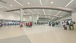 Krabi International Airport[1] (IATA: KBV, ICAO: VTSG) is in Nuea Khlong subdistrict, Nuea Khlong district, Krabi province in southern Thailand. It is about 7 kilometres (4 mi) east of downtown Krabi. The airport opened in 1999.[2]: 18 In 2017, the airport handled over 4.3 million passengers.[3] The terminal is designed for three million passengers, a number that has already been exceeded, and expansion will push its capacity to over 8 million.[4]