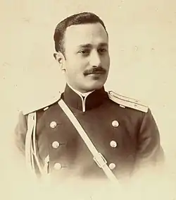 Christophor Araratov was born in a noble family on June 18, 1876, in Tiflis (present day capital of Georgia). His father, Karapet Avetikovich Araratov, was a lieutenant colonel of the Russian Imperial Army.[3] At the age of 10, the young Araratov entered the Tbilisi cadet corps. He studied there for seven years and graduated in 1893. Thereafter, he entered Mikhaylov artillery school in Petersburg. Graduating from the academy in 1895,[3] he won recognition as one of the three best students, which earned him the rank of a second lieutenant and right to choose the location of service. At the graduation ceremony, he was the head of Cavalry troops.