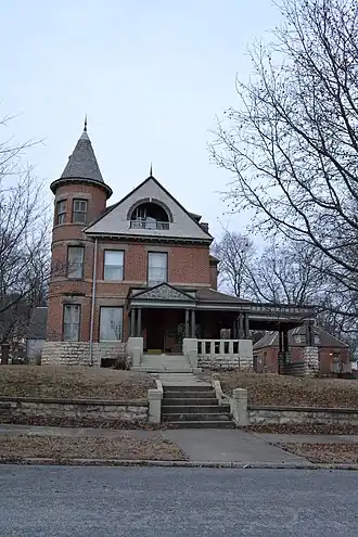 Krug Park Place Historic District is a national historic district located at St. Joseph, Missouri. The district encompasses 28 contributing buildings and 1 contributing site in a predominantly residential section of St. Joseph. It developed between about 1888 and 1938, and includes representative examples of Italianate, Queen Anne, Colonial Revival, Tudor Revival, and American Craftsman style architecture. Notable buildings include the Henry Krug, Jr. House (1892) designed by architect Edmond Jacques Eckel (1845–1934),`A.V. Schaeffer House (1913), W.W. Van Sant House (1914), J.G. Schneider House (1899) by Eckel, Benton Quick House (1901), Mrs. W.B. Watkins House (1903), and George Ward House (c. 1857).[2]