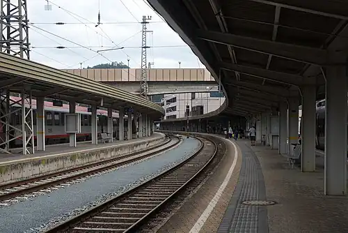 A new park-and-ride facility has been built on the west side of the station, and the platforms were equipped with lifts. The platforms at Kufstein are amongst the longest in Austria, at over 740 metres (2,430 ft).