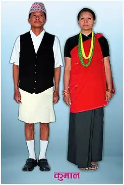 Kumal (Nepali: कुमाल) is a caste or ethnic group in Nepal, traditionally associated with pottery.[3] Their traditional profession is endangered due to competition from cheaper, more durable industrial pots.[4] Fewer youths learn the skills.[3] They are found to inhabit in the Terai, inner Terai and Mid-hills close to the riverbanks where bioresearches are rich to continue to their traditional occupation.[5] Their traditional dance, the Pangdure, is considered endangered.[6]