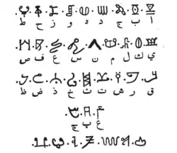 Purported Kurdish script, from the book Shawq al-Mustaham, attributed to Ibn Wahshiyya