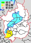 Map of Kurita District with Meiji period (1890) area in yellow.
