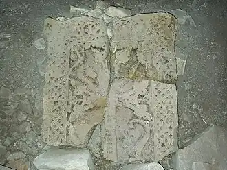 According to historian Samvel Karapetyan, in front of the small eastern church, until 1989, two khachkars were placed side by side in their original place. While part of the Azerbaijani SSR, the monument suffered a lot, and an attempt was made to eliminate Armenian traces in order to present it as Caucasian Albanian. These khachkars had disappeared by the time Armenian forces took control of the region in April 1993, but the inscriptions made on them had been recorded.[3]։