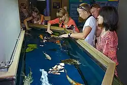 The exhibition is informative and interactive. There are technical exhibitions, aqua parks and theatres. Visitors can learn about water resources and their value in people's life. The journey through the museum represents a trip through Kyiv's water-supply system, demonstrating both water and wastewater treatment. There is also a playground with a sandbox, a pump and soap bubbles.[2]
