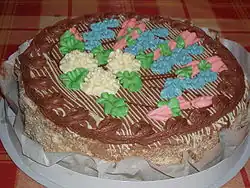 The Kyiv cake (Ukrainian: торт «Київський», romanized: tort "Kyivskyi" [tɔrt ˈkɪjiu̯sʲkɪj]) is a dessert cake produced in Kyiv, Ukraine since December 6, 1956[2] by the Karl Marx Confectionery Factory which is now a subsidiary of the Roshen corporation.