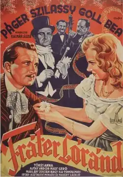 Lóránd Fráter (Hungarian: Fráter Loránd) is a 1942 Hungarian musical comedy film directed by László Kalmár and starring Antal Páger, László Szilassy and Bea Goll.[1] [2] It was shot at the Hunnia Studios in Budapest. The film's sets were designed by the art director József Simoncsics.