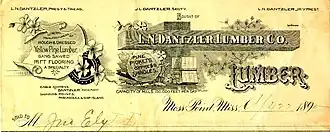 L.N. Dantzler Lumber Company had its beginning shortly before the American Civil War, when William Griffin acquired a sawmill at Moss Point, Mississippi, where the Pascagoula River and Escatawpa River converged. Lorenzo Nolly Dantzler married Griffin's daughter in 1857. He began to work with his father-in-law and purchased the sawmill from Griffin in the 1870s, later establishing it under his name.[2][3]