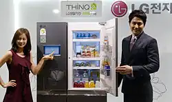 The branding was first introduced in 2011 in the Consumer Electronics Show (CES) in Las Vegas as THINQ.[7] The first ThinQ product was a smart refrigerator, with features such as smart savings options, food management system, and different software in the LCD screen on the fridge.[8]