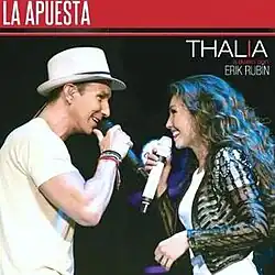 "La Apuesta" (The Bet) is a Latin pop song recorded originally in 2002 by the Spanish singer Rosa López in duet with Manu Tenorio for her first album. In 2012, it was recorded by Mexican artist Thalía featuring Erik Rubin and included in Thalía's eleventh studio album Habítame Siempre as well as the 2013 live album Viva Tour.[2][3] The song was written by Beatríz Herraiz and produced by Armando Ávila. It was released on October 22, 2013 as the first single off the live album VIVA Tour. The single is a live version of the song recorded at the National Auditorium on April 26, 2013.[4]