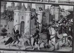 Thieves spoil the murder of Plaisance and Coustant's son, who is left in a forest near Castres, which is being besieged by Clovis I of the Franks. When the senator makes advances on Plaisance he is paralyzed and she flees to the pagan king of Castres. The siege of Jerusalem ends when King Amaury manages to scale the tallest tower. The pagan king of Jerusalem now converts and becomes an ally. This is the centrepiece of the chanson.[3]