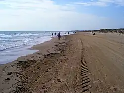 The main beach of the district is La Marina beach, a beautiful and large beach of fine golden sand. It is considered semi-urban as a small part of it has particular households behind it, but mostly there is a large pine wood. It has a blue flag, maritime surveillance and a rental service providing deckchairs and parasols. There is also a nautical station in order to practice water sports. [2]