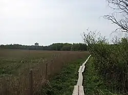 There was peat industry at the Turvesuo (Swedish: Torvmossen) swamp in western Laajalahti from 1910 to 1962 and a cargo railway track to the Kilo railway station was built to serve it.[2] The Tarvontie road works of the Finnish national road 1 cut off the connection in 1960.[3]: 161  The Turveradantie road was completed in 2015 and follows the cargo rail track along the Laajalahti area. The Mankkaa landfill was located in western Turvesuo from 1957 to 1986.[4] The landfill area was later taken to reuse when the Tapiola Golf field and recreation area was opened there.