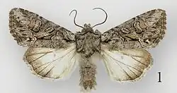 The length of the forewings is 14–16 mm.[1] Adults have been recorded on wing from April to May and September to October in two generations per year.