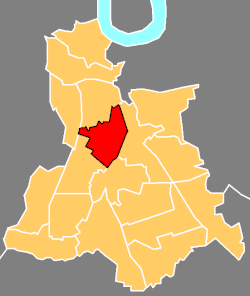 The electoral ward of Ladywell (red) within the London Borough of Lewisham (orange)