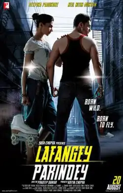 Lafangey Parindey (transl. Cheeky Birds) is a 2010 Indian Hindi-language romantic drama film directed by Pradeep Sarkar and produced by Aditya Chopra under the Yash Raj Films banner.[2][3][4][5] The film stars Neil Nitin Mukesh and Deepika Padukone in lead roles and blends elements of romance, sports, and resilience. Partially inspired by the 1978 American film Ice Castles and the 1999 Tamil film Thullatha Manamum Thullum, the narrative follows a blind figure skater and a street fighter whose lives intertwine in the gritty underbelly of Mumbai.[6][7]