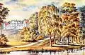 The monumental structure was raised on a high base of rectangular shape (70 × 20 m). In the courtyard of the estate were "the hut" ledovnya (refrigirator-building), congestive, stable box and other outbuildings.