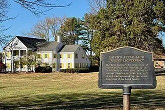 The history of the company can be traced to the immigration of William Laird from Fife in Scotland to Monmouth County in 1698. He was among the first to produce applejack in the area. His descendant, Robert Laird, served in the Continental Army under George Washington. Washington asked Laird for his recipe for "cyder spirits" before the Revolution.[5][6] Today, none of the company's production is located in New Jersey. It obtains all its apples from central Virginia and distills its products in North Garden, Virginia.[6] Distilling at its New Jersey facilities ceased in 1972 and Laird's only blends, ages and bottles its products in Scobeyville.[6]