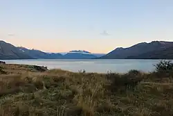 Lake Ōhau[2] is a lake in the Mackenzie Basin in the South Island of New Zealand. The Hopkins and Dobson rivers fed into the northern end of Lake Ōhau. These rivers have their headwaters in the Southern Alps. The lake's outflow is the Ōhau River, which travels from the southeast corner of Lake Ōhau and feeds into the Waitaki River hydroelectric project. The Barrier range (and Mount Sutton 2007m in particular) dominate the western side of Lake Ōhau, while the Ben Ohau range dominates the eastern side of Lake Ōhau. At the northern end of the lake, in between the Hopkins and Dobson rivers, lies the Naumann Range of mountains (with Mount Glenmary 2590m being the tallest).