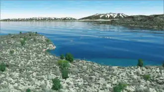 Saddleback Mountain was an island in Lake Alamosa, and its northern side was swept by waves during storms owing to the lake's long fetch.[2] Additional islands were located in its southern basin; today they are hills.[4] The city of Alamosa[8] and possibly also the town of Center, Colorado are located within the former lake's floor.[9] San Luis Lake presently occupies a small basin in the former lake floor;[10] the basin was previously occupied by a leftover of Lake Alamosa, Lake Sipapu.[11]