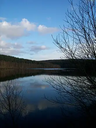 Lake Ry de Rome is an artificial lake near the city of Couvin, Wallonia, in Belgium near the border of France. The lake is located in the Ardennes. The water volume is 2,200,000 m³ and the area is 0.25 km2.