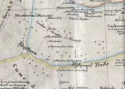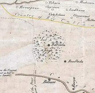 Detail of the Lakhi Jungle tract as surveyed by Mirza Mogul Beg between 1786–96 for F. Wilford, map compiled in 1804.