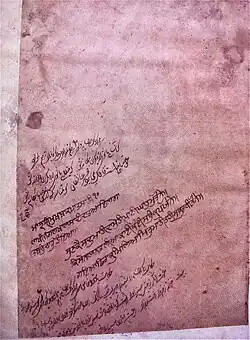 A jungle formed in this area due to the shifting course of the Sutlej river.[3] A Bhatti chief, named Rana Lakhi, is said to have settled in the area of the Lakhi Jungle around the turn of the millennium between the 10th and 11th centuries.[3] During the Mughal-period, the Lakhi Jungle was a faujdari-district under the Birun-Panjnad area of the Dipalpur Sarkar of Multan Subah.[1] The ninth Sikh Guru, Guru Teg Bahadur and tenth Sikh Guru, Guru Gobind Singh visited this place.[4] During the time period of Guru Gobind Singh and later, the area of the later Firozpur division was covered by a dense forest which stretched from Bathinda to Kotkapura.[5][6] The Lakhi Jungle Darbar was based in the Lakhi Jungle tract.[7] After the evacuation of Anandpur, the Guru held a poetic court (Kavi Darbar) within the Lakhi Jungle.[8] According to Piara Singh Padam, it was attended by Behari, Lal Das Khiali, Adha, Jado Rai, Fat Mal, Keso, and Bhagtu.[8]
