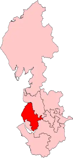 When it was created in England in 1979, it consisted of the Westminster Parliament constituencies of Crosby, Huyton, Ince, Ormskirk, St Helens, Southport, Widnes.[1]