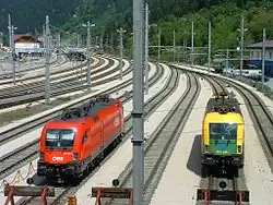 Landeck-Zams railway station, formerly Landeck, is a railway station in the city of Landeck, in the Austrian state of Tyrol. It is located on the Arlberg railway between Innsbruck and Bludenz. It is frequented by more than 2000 travellers a day,[1] whereby a majority of them are commuters that are working or studying in Innsbruck.
