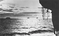 The landings were timed to take place in conjunction with similar operations at Nassau Bay, in New Guinea, and on Woodlark and Kiriwina.[14] After sailing from Guadalcanal on 29 June,[15] the Allied landing force was hampered by rain and fog. The main ground combat element assigned to this force was Major General John H. Hester's 43rd Infantry Division. The task force's approach was covered by Catalinas flying night patrols through the Blanche Channel. In the pre-dawn hours (approximately 02:25) the American destroyers USS Talbot and USS Zane detached from the main force to land New Zealand-trained and led Fijian and Tongan commandos[16][17] and Companies A and B of the American 169th Infantry Regiment on Sasavele Island and Baraulu Island. The islands were quickly secured, although Zane, became grounded on a reef, remaining so until the afternoon. These islands were strategically important because they are located just off the coast of New Georgia and control the entrance to Roviana Lagoon from the Blanche Channel.[18][19]