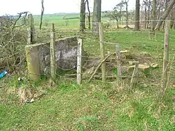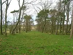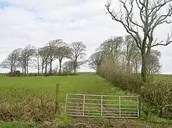 The lands of Ashinyards, including the wood, comprised between three and four hundred acres of good land. The extent of the woodland policies was a notable feature. One area of woodland is known as the 'Short Ride Plantation' and a former area was known as the 'Long Ride Plantation'.[8] Quhytehirst or Whitehirst, Nether Mains and Auchenkist were at one time part of the estate lands.[12] A wooded belvedere known as the Ashgrove Mount survives to the north of the walled garden. A small wooded roundel was located beyond the Ashenyards farmstead at the intersection of hedgerows.
