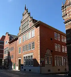 The Langenstraße is a historical street in the old town of Bremen in the north of Germany. First mentioned in 1234, it is one of Bremen's oldest streets and one of the most important for the city's merchants. It no doubt originated at the time when the first settlements grew up on the north bank of the Balge.[1] It runs west from the Marktplatz parallel to the River Weser over Bürgermeister-Smidt-Straße to Geeren.[2] Many of the street's historic buildings were seriously damaged during aerial bombings in the Second World War but were carefully reconstructed in the postwar period.[3]
