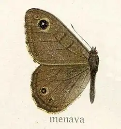 Lasiommata menava, the dark wall, is a species of satyrine butterfly found from Asia Minor across Transcaucasia and the mountains of Central Asia to the Hindu Kush and the north-western Himalayas.[1]