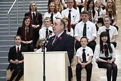 The Scottish First Minister, Alex Salmond, opens the new school campus in 2013.